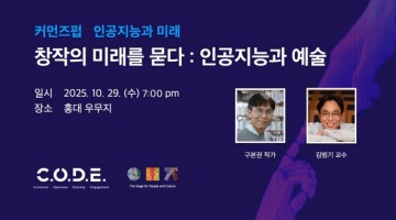 [커먼즈펍 인공지능과 미래] 주제 : 창작의 미래를 묻다 : 인공지능과 예술 일시 : 2025년 10월 29일(수) 19시 - 22시 장소 : 우무지 공연장 (서울 마포구 독막로8길 7 삼성빌딩 B1) [패널리스트] 구본권 작가 한겨레신문사에서 오랜 기간 정보기술 분야를 취재하며 사람과디지털연구소장을 지냈습니다. 아날로그 세대가…
